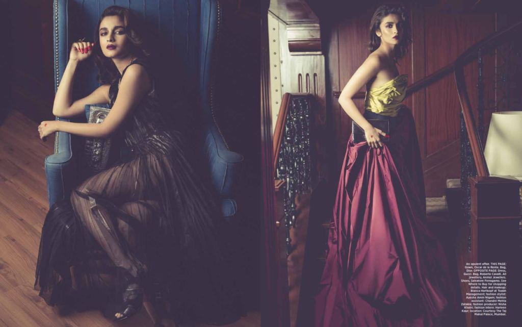 The beauty direction for the cover was led by hair and makeup artist Bianca Hartkopf (Toabh Talents), who crafted a 1920s-inspired sculpted hairstyle and a bold, berry-toned lip to accentuate Alia’s luminous features. Behind the lens, photographer Prasad Naik captures the cover with dramatic depth, while stylists Mohit Rai and Ayesha Amin Nigam curated an ensemble that perfectly reflects contemporary bridal glamour.